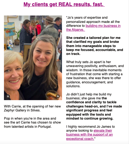 Plus Jo also helped me develop my copywriting skills for my website, blogs and newsletters.